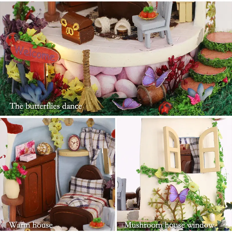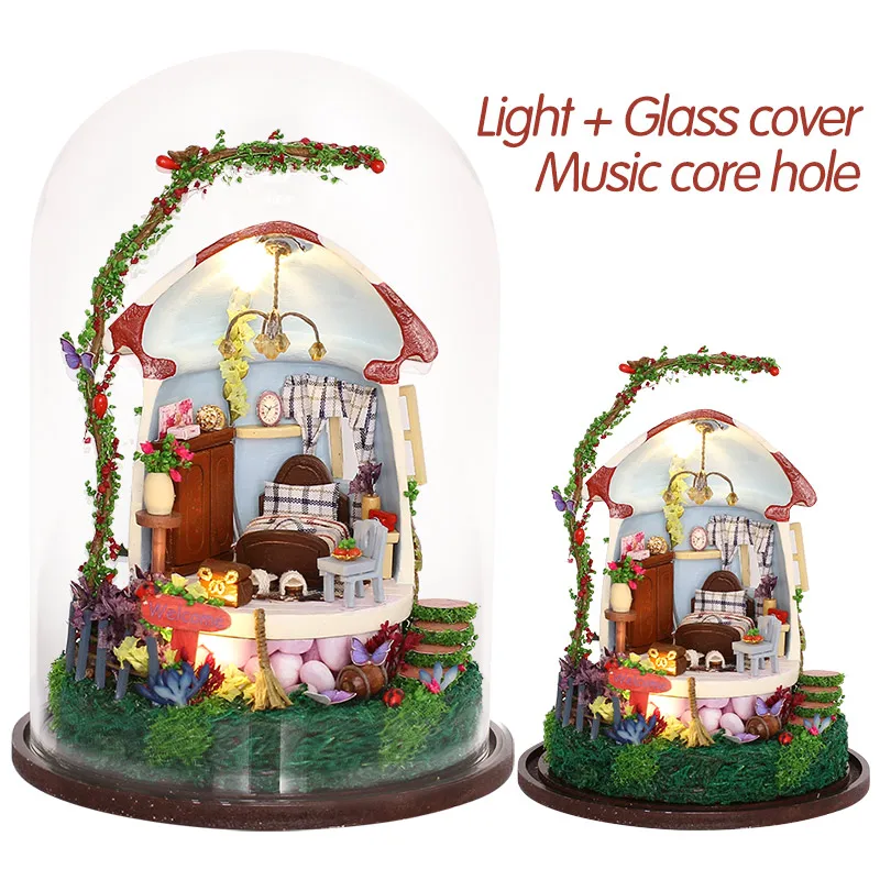 Deals Mushroom Romance Doll House Furniture Diy Miniature Dust Cover 3D Wooden Miniaturas Dollhouse Large